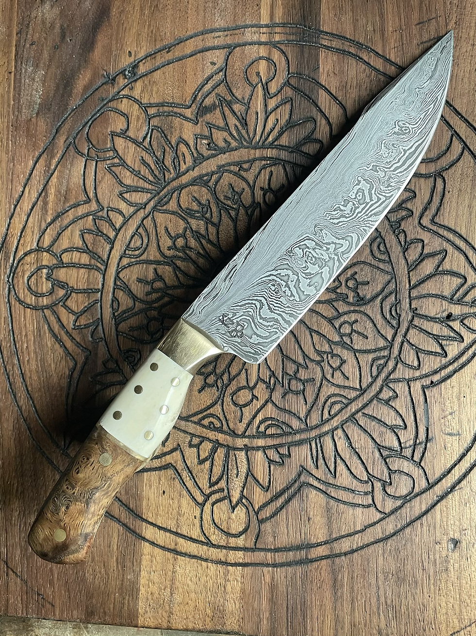 Damascus Hunter with sheat- Stacked Skateboard deck and curly maple