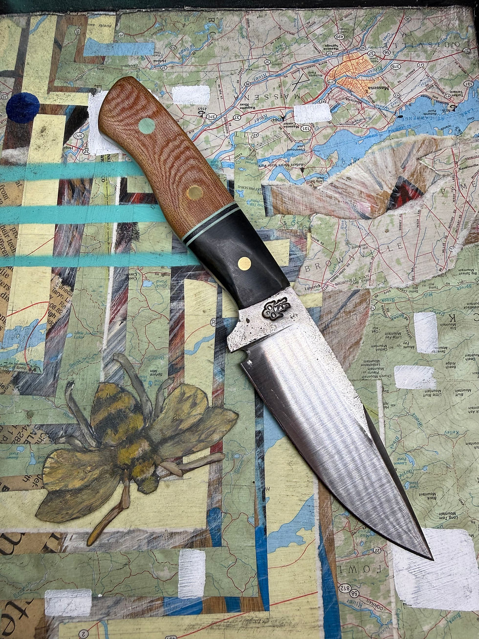 North Country Hunter Drop Point -Natural and black micarta with blue